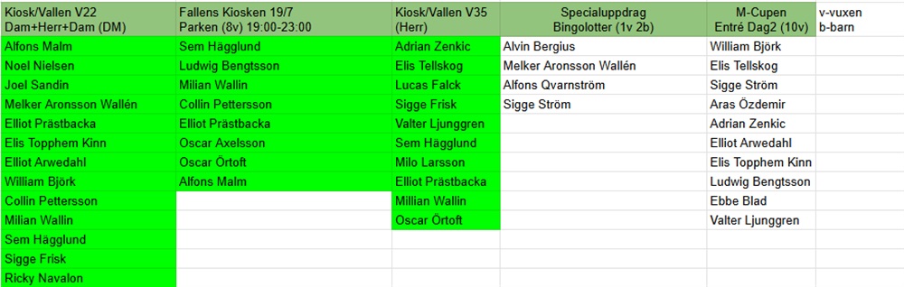 Mellandagscupen: Entrén skall bemannas med 10 vuxna, 6st mellan 14.14-18.30 och 4st vuxna mellan 18:00-22:15.